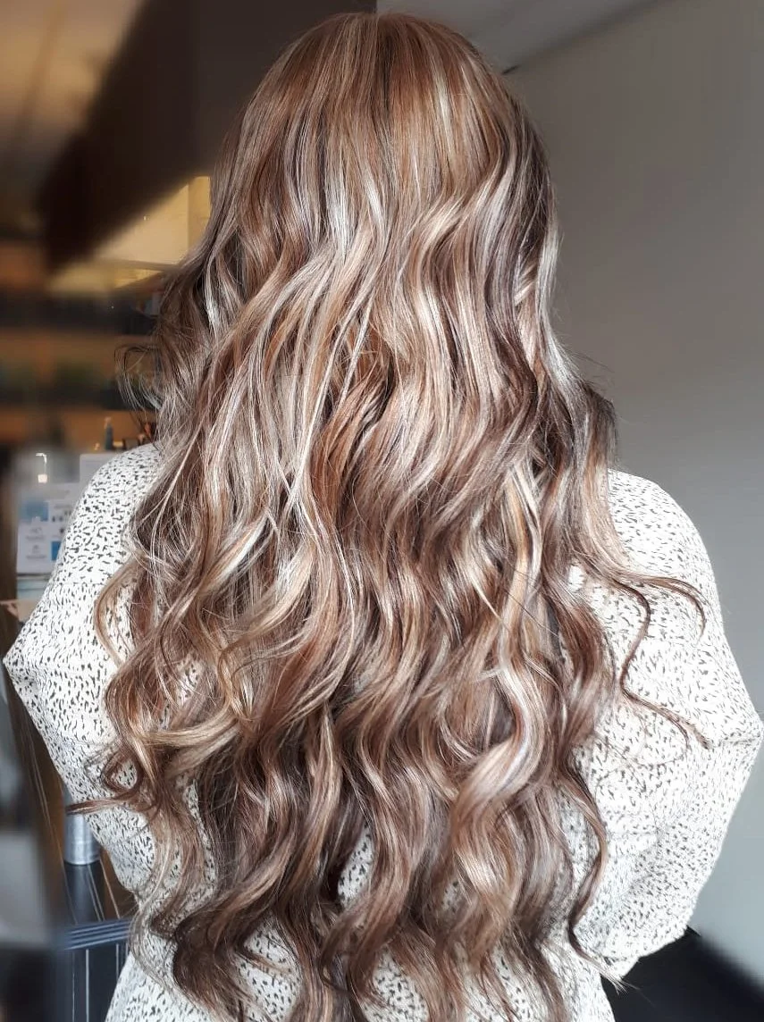 Het kleuren van een balayage of highlights in verschillende lengten.